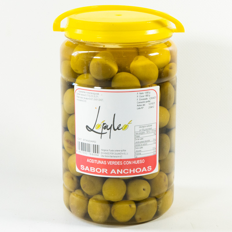 WHOLE GREEN OLIVES (MANZANILLA) ANCHOVY FLAVOR