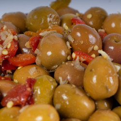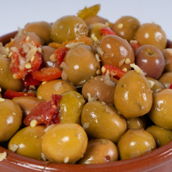 Aceitunas gordal recolectadas en su punto óptimo de maduración. Se elaboran de forma natural con un aliño típico sevillano.