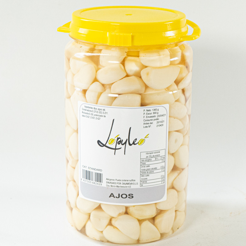 El ajo es un encurtido muy saludable, con un sabor suave y una textura crujiente, se puede utilizar para aperitivo, mezcla aceitunas y relleno de aceitunas.